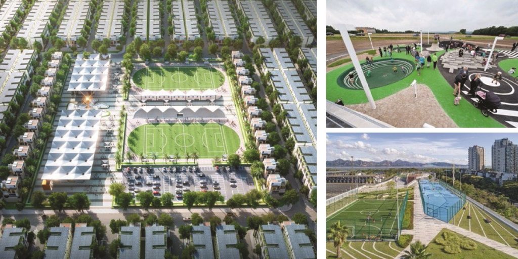 - Công viên thể thao đa năng: Đường chạy bộ, sân bóng, khu tập thể thao ngoài trời.